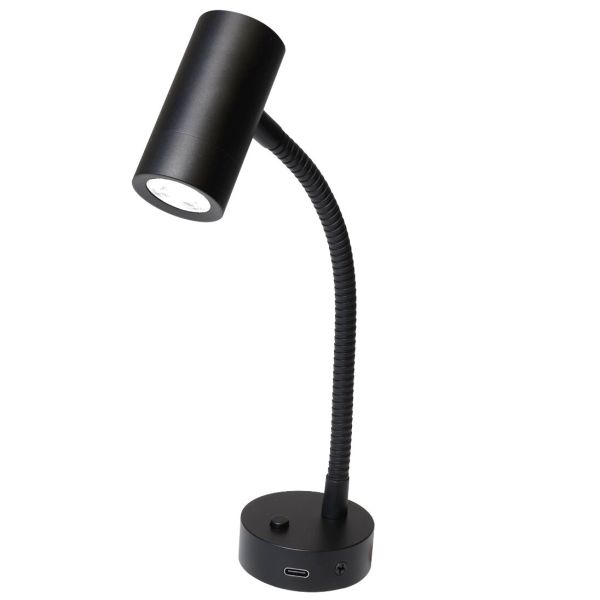 Mini Tube D4 Flex är en högkvalitativ utanpåliggande spotlight som kombinerar elegans och funktionalitet. Tillverkad av lackerad aluminium i satinsvart finish smälter den sömlöst in i alla moderna interiörer. Den flexibla 180 mm svanhalsen möjliggör exakt ljusriktning, perfekt för riktad belysning. Utrustad med en 12 V power-LED (1,5 W) producerar spotlighten en varm, behaglig ljusfärg på 3000 K och en ljusstyrka på 120 lumen. En integrerad strömbrytare och en praktisk USB-C-laddningsport (5 V, 2 A) gör den särskilt mångsidig och användarvänlig.