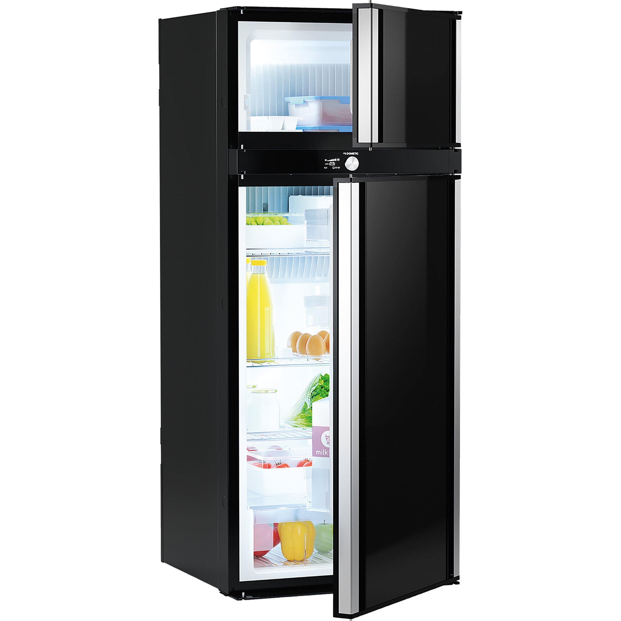 Kylskåpen har den bästa kylprestanda i sin klass: Vid utomhustemperaturer på upp till 32 °C kan de kylas ner till 7 °C, i frysfacket till och med till –12 °C. Användningen är mycket intuitiv tack vare TFT-displayen och vrid-/tryckknappen. En LED-ljuslist för jämn belysning av interiören avrundar den innovativa helhetsbilden. Energivalet sker automatiskt genom automatiskt energival (AES). Tack vare CI-bussanslutningen är kylskåpen redo för smarta lösningar. Specifikt kännetecknas RMD 10.5T och RMD 10.5XT av två dörrar för ett kyl- och frysfack, varvid RMD 10.5XT har en extra djup inredning. Den särskilt tunna RML 10.4T med en dörr är lämplig för installation i trånga utrymmen. De 2 nya modellerna RM 10.5T och RMS 10.5T designades för installation under bänkskivan.