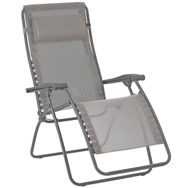 Flera justerbara och vikbara. Stålrörram i "hög nivå elastisk" kvalitet ø 20 mm. Fåtölj på upphängningssystem med gummibandn (utbytbar). Ergonomisk, justerbar och avtagbar nack kudde.