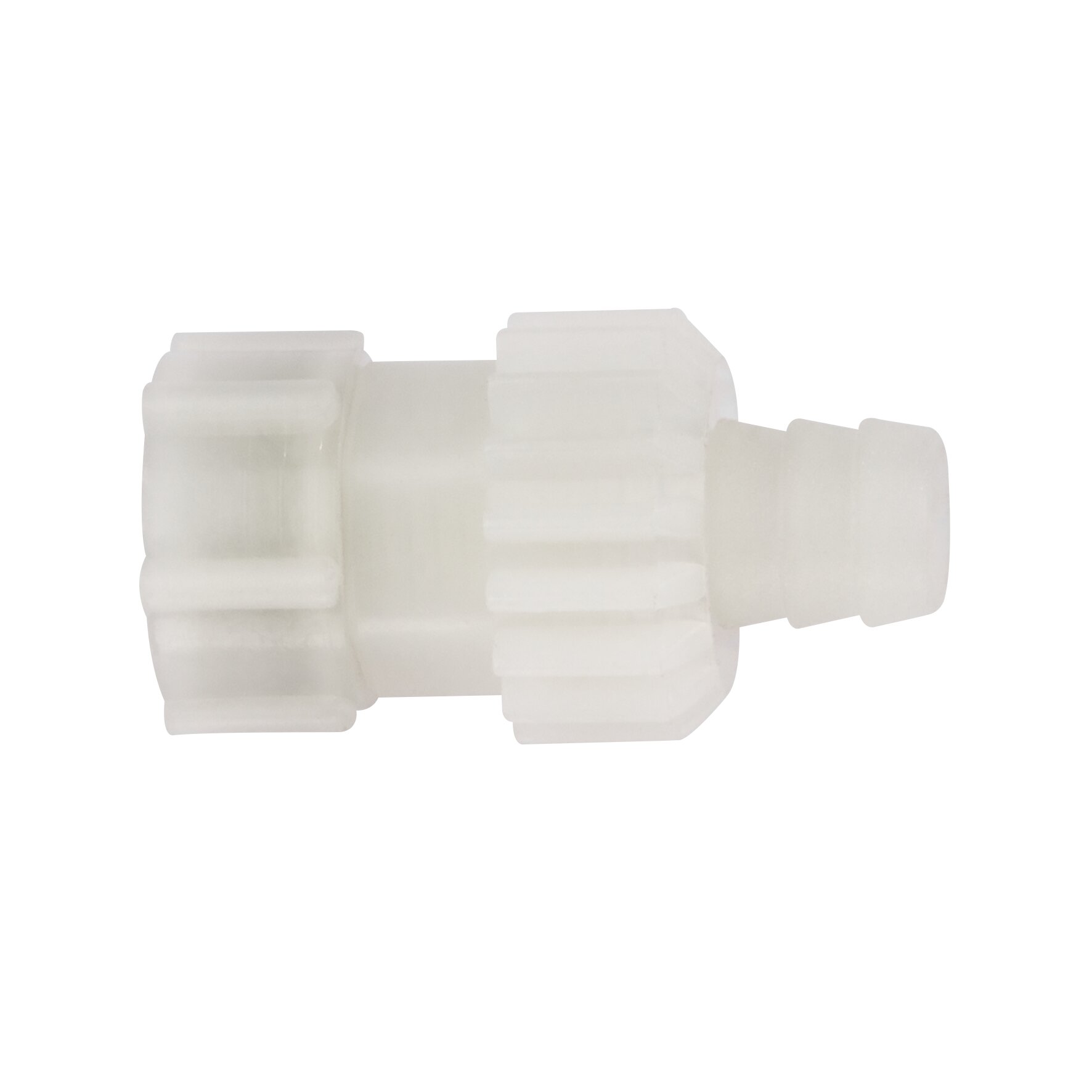 En innovativ form av skruvanslutning för PE och PVC slangar. Genom en flödesinriktad kanalstyrning ökar mängden vätska, vid samma tryck, med upp till en fjärdedel. Anslutningen håller ett tryck upp till max. 4 bar och en temperatur på -15 ° C till 80 ° C stod. Inre diameter: 10 mm. För skruvfasta PVC-slangar (tygförstärkt) och PE-rör.