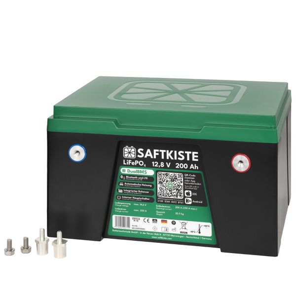 Saftkiste Litiumbatteri, batteripolerna framtill