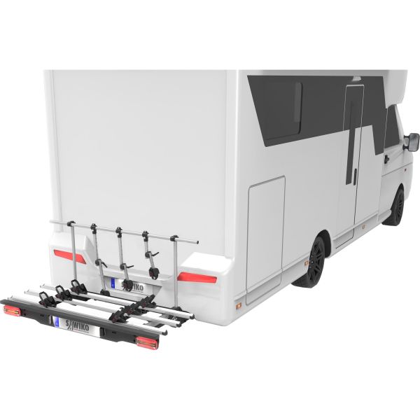 Det moderna cykelstället finns nu även med en LED-ljusramp, och du kan välja mellan LED- och konventionell belysning. Den har en lättviktsdesign som ändå garanterar hög stabilitet. Med en maximal nyttolast på 80 kg är den idealisk för säker transport av upp till 3 cyklar eller elcyklar. Velo erbjuder också större bekvämlighet tack vare sin användarvänlighet: transportplattformen fälls ihop utan ansträngning när den inte används, vilket sparar utrymme. Tack vare den nya fällmekanismen med en spak fälls även ljusrampen ihop automatiskt. Cykelskenorna och stödarmarna med spärrhakefästen säkerställer ett säkert grepp för cyklarna, och ett ombyggnadskit för elcyklar ingår.